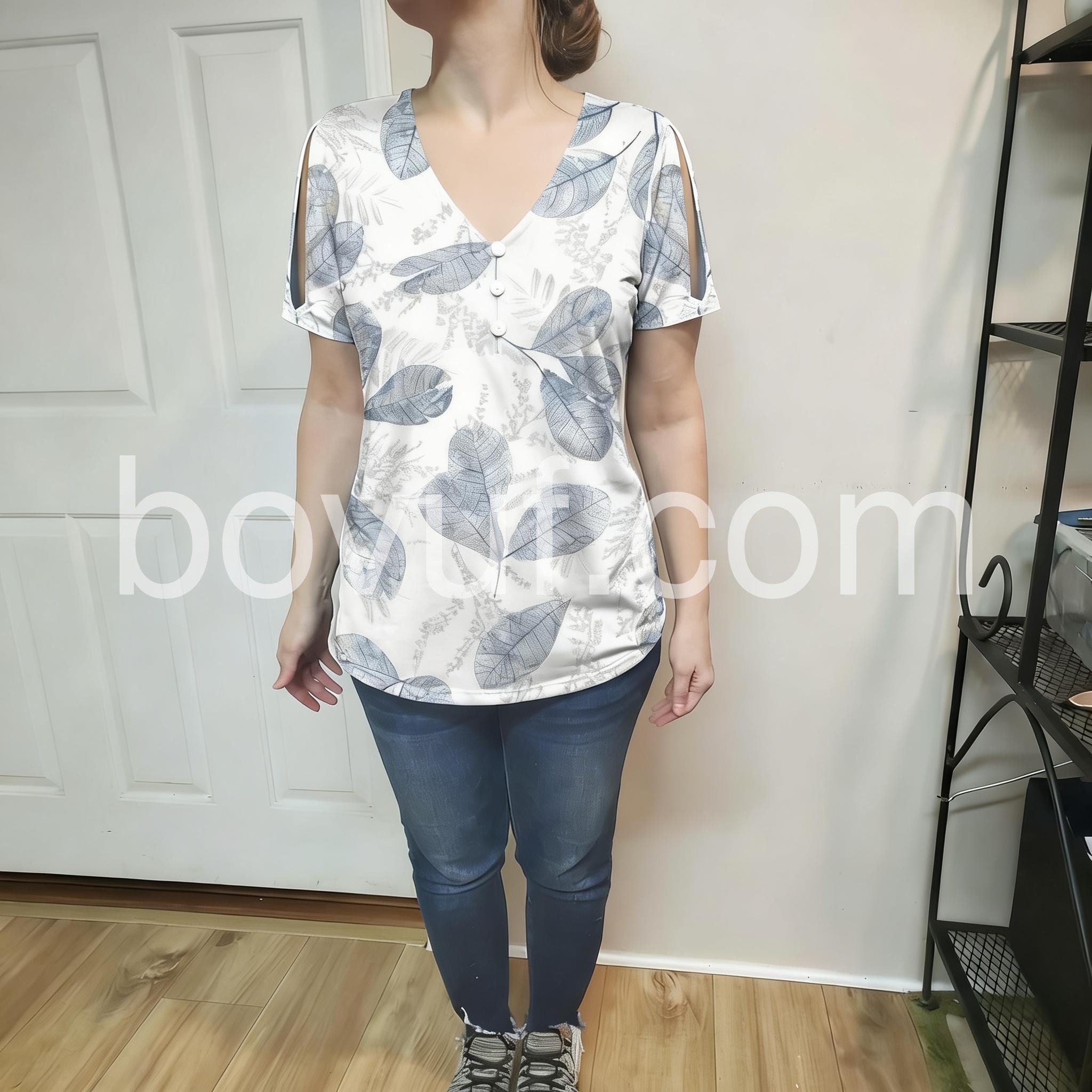 - Neckline: V-neck