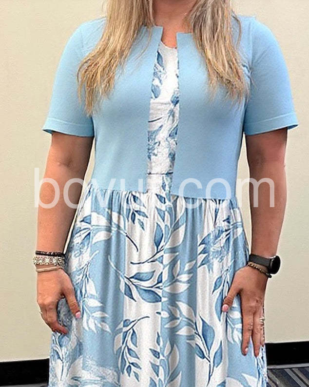 Discover the perfect balance of style and comfort with our Unique Blue Plant Print Midi Dress. Featuring a beautifully printed design and a matching jacket, this dress is perfect for any occasion. Made with high-quality materials, you'll feel confident and stylish all day long.