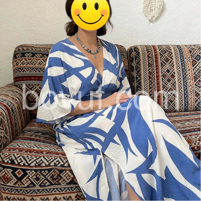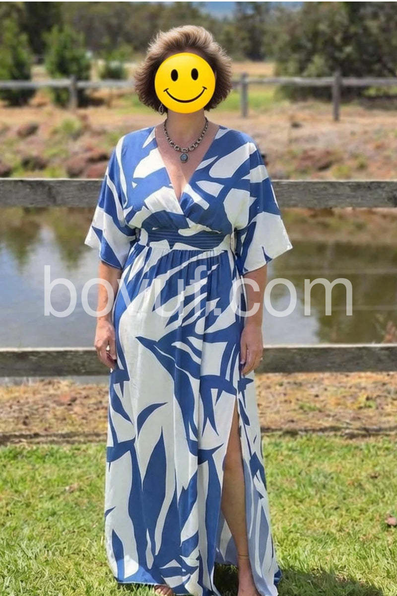 Blue Print 3/4 Sleeve Maxi Dress