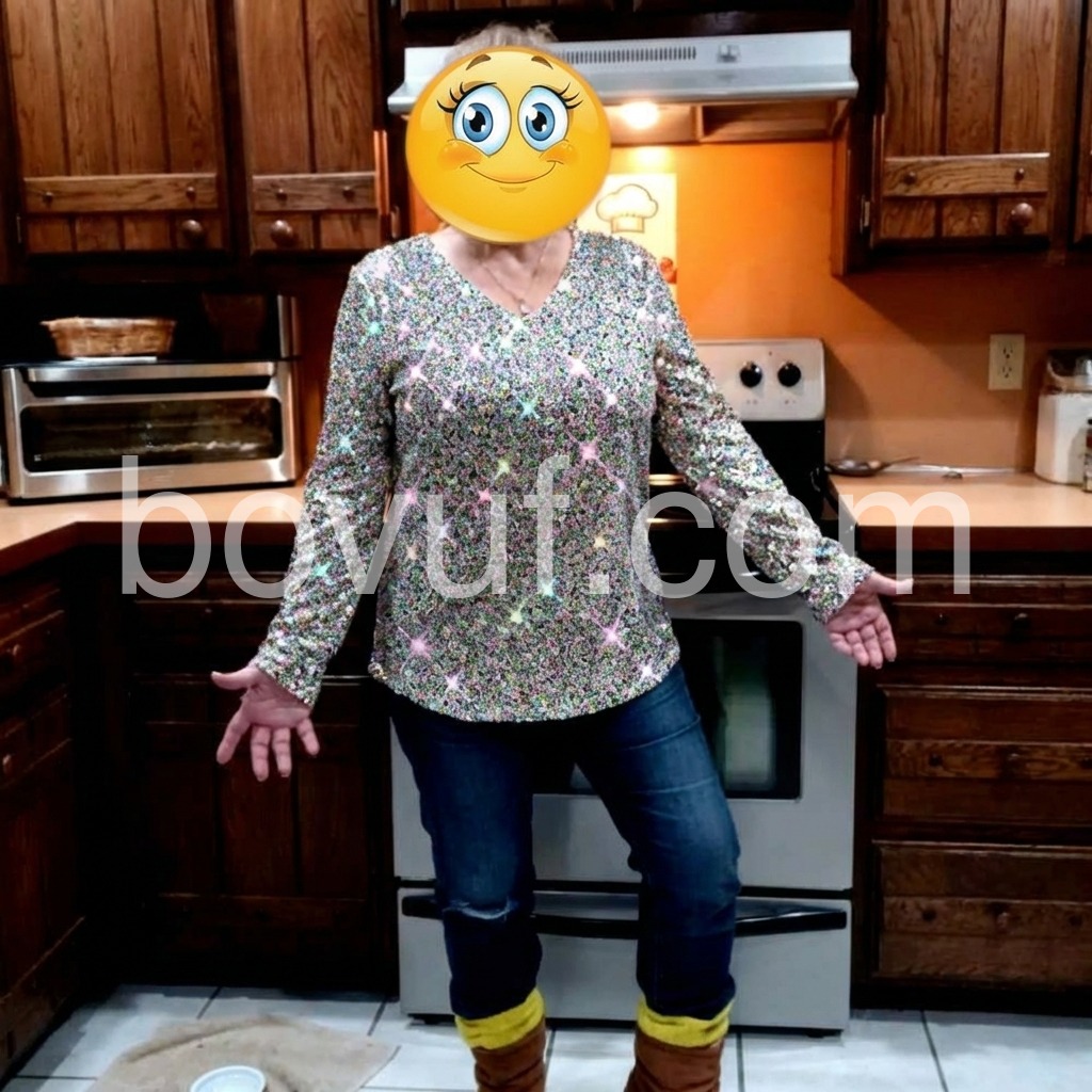 Nothing but fun disco times head with this holiday top! This cheerful top features a total glam disco ball metallic print, perfect for adding fun-loving vibes and seasonal cheer this winter and beyond. The long sleeves, waist-length fit, and round collar provide the right amount of coverage for cooler nights and days.