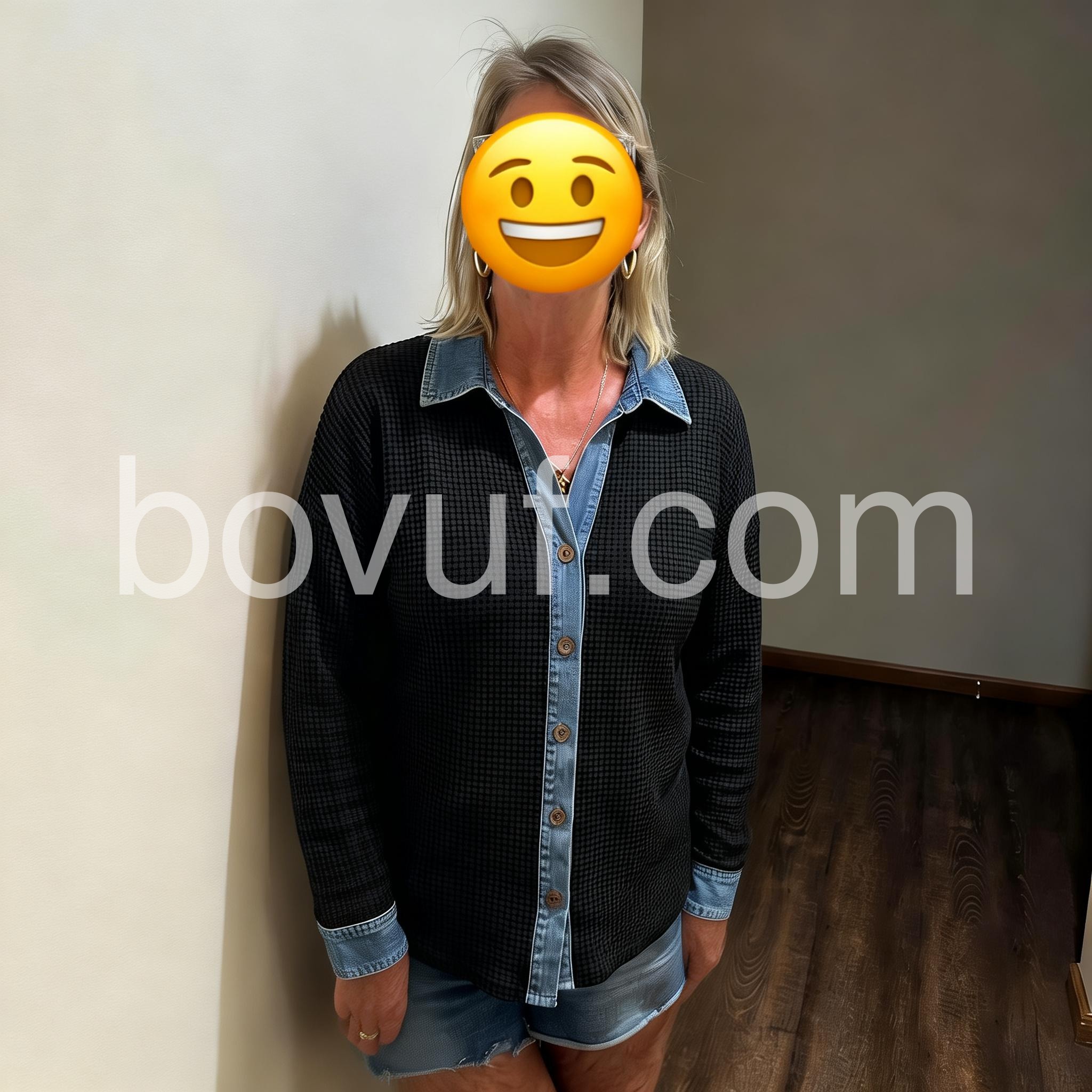 Elevate your casual wardrobe with this sophisticated denim shirt, featuring striking contrast detailing at the collar and cuffs. The juxtaposition of textures creates visual interest while maintaining refined simplicity. Crafted for versatility, this piece transitions seamlessly from weekend wear to smart-casual occasions. The structured collar and finished cuffs ensure a polished appearance, whether styled solo or layered. A timeless investment that combines contemporary design with enduring appeal.