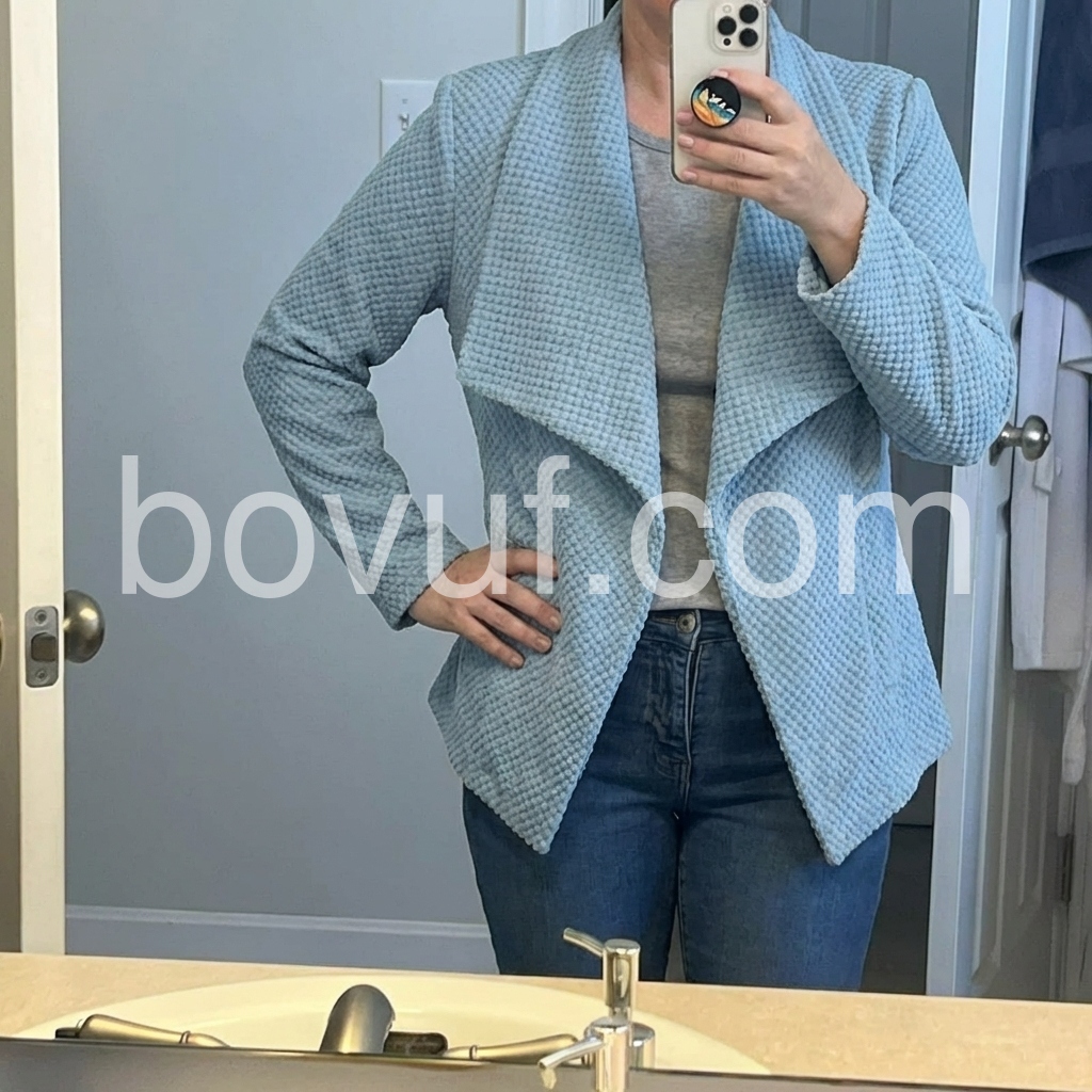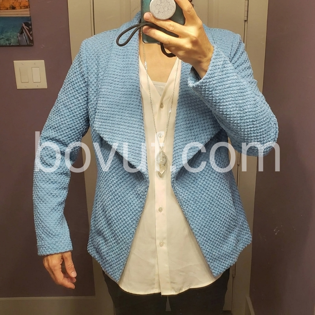 This fresh light blue outerwear features a plain collared design, perfect for adding a touch of sophistication to any outfit. Made with high quality materials, experience comfort and style in any weather. A must-have addition to any wardrobe.